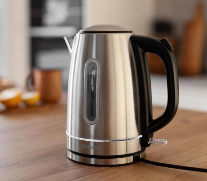 Електрочайник Gorenje K17DS. Завдяки об'єму чайника 1,7 л ви зможете закип'ятити воду один раз, і всі члени сім'ї зможуть одночасно випити теплий напій. Дуже зручно, коли в гості приходить компанія друзів.