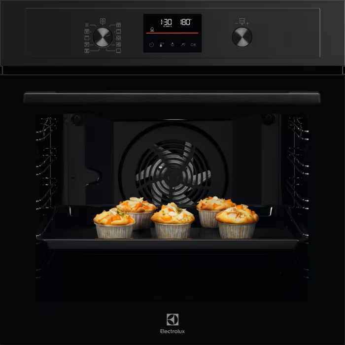 Духова шафа електрична ELECTROLUX EOD4P57H. SteamBake дає змогу готувати як у пекарні, перебуваючи у власному домі: достатньо натискання кнопки. Вологість допомагає тісту повністю піднятися, даючи змогу домогтися ніжної та повітряної м’якоті, а сухе нагрівання надає скоринці насиченого блиску. Функція підходить не лише для випічки, а й для приготування смаженої курки та риби.