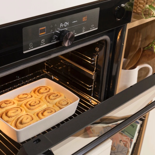 Вбудовані програми AutoBake забезпечують повністю автоматичне приготування страв із понад 22 рецептами. Часто потрібно лише вибрати тип страви, її вагу та натиснути кнопку запуску, а духова шафа виконає решту.