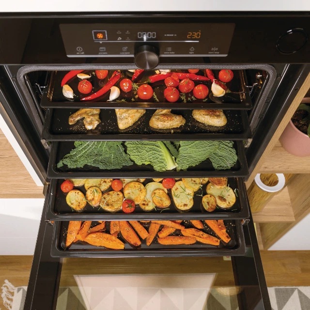 Функція MaxView забезпечує великий огляд процесу випікання завдяки збільшеній площі скла дверцят, галогенному освітленню та продуманому розташуванню рівнів випікання, без необхідності відчиняти дверцята.