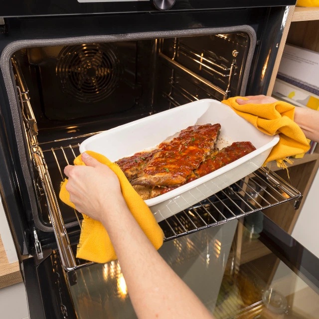 Скло дверцят можна легко знімати для миття, забезпечуючи зручний доступ та хороший огляд процесу випікання.