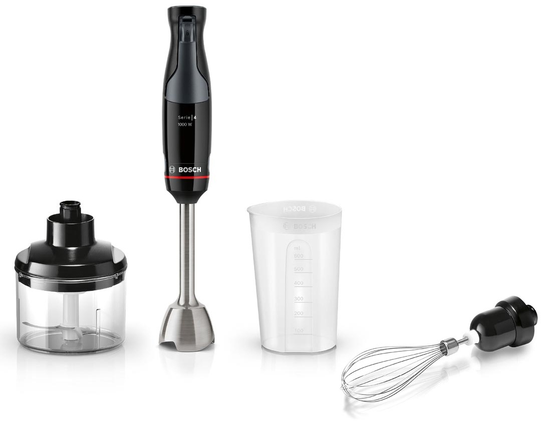Блендер BOSCH MSM4B621 з двигуном потужністю до 1000 Вт для ефективного подрібнення твердих інгредієнтів (горіхів, сиру) та для складних викликів у приготуванні.