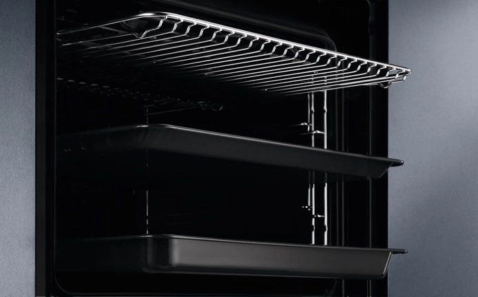 Піролітичне очищення підтримує духову шафу в блискучому стані без додаткових зусиль. Система самоочищення нагріває камеру до температури, при якій жир і залишки перетворюються на попіл, залишаючи лише протерти дно камери. Скребок не потрібен.