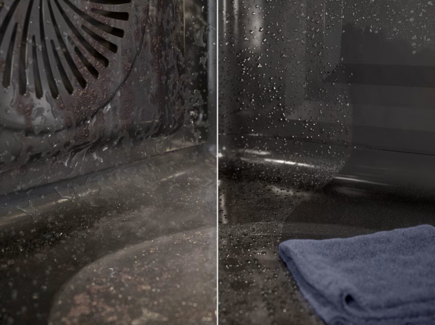 Функція AquaClean дозволяє очищувати духову шафу за допомогою пари без використання агресивних мийних засобів. Вода, розміщена на дні камери, випаровується, після чого утворена пара розм’якшує застарілий жир і залишки їжі. Очищення внутрішніх стінок відбувається природним і ефективним способом.