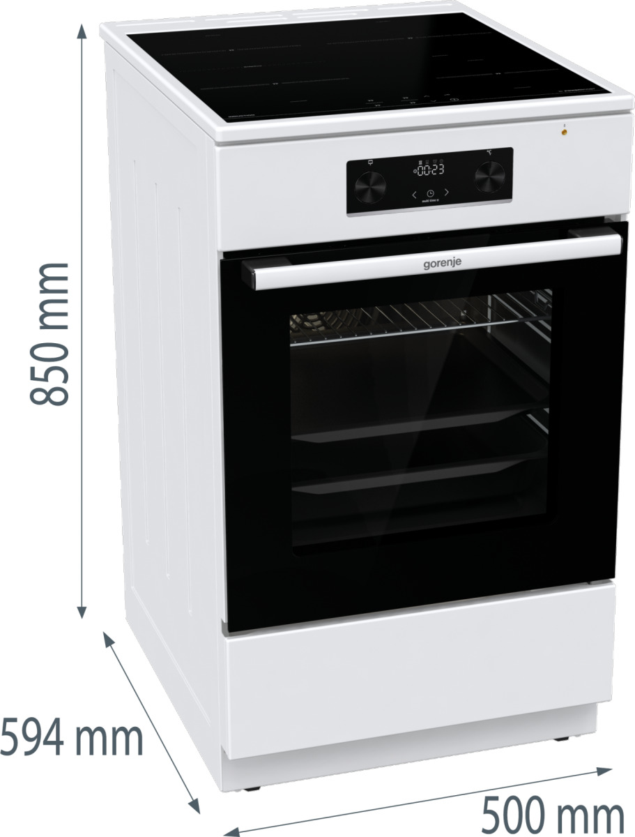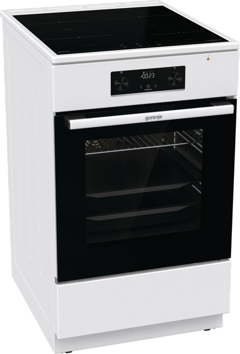 Плита електрична GORENJE GEIT 5C60 WPG оснащена функцією об’єднання зон нагрівання, що дозволяє з’єднувати дві окремі зони в одну одним дотиком. Це рішення підходить для одночасного приготування великих страв і гарнірів. Функція OptiBake забезпечує швидкий попередній нагрів духовки до 200 ˚C лише за 4,5 хвилини, скорочуючи час нагрівання до 30 % порівняно зі стандартними режимами та роблячи духовку однією з найшвидших у своєму класі. Це особливо зручно для страв, що потребують попередньо розігрітої духовки. Про досягнення необхідної температури повідомляють світлові та звукові сигнали.