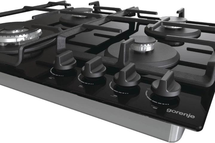 На варильній панелі розташовані поворотні перемикачі для керування конфорками, які розміщені фронтально. Панель оснащена такими функціями, як газ-контроль та електропідпал, що забезпечують максимальну безпеку і комфорт під час приготування. Телескопічні напрямні для деко у духовці дозволяють з легкістю висувати і засовувати посуд, а наявність підсвітки забезпечує зручність у використанні. Механічні ручки та сенсорні кнопки дозволяють легко керувати всіма функціями духовки, серед яких є GentleBake для повільного випікання, FrozenBake для приготування заморожених продуктів та функція випікання піци.