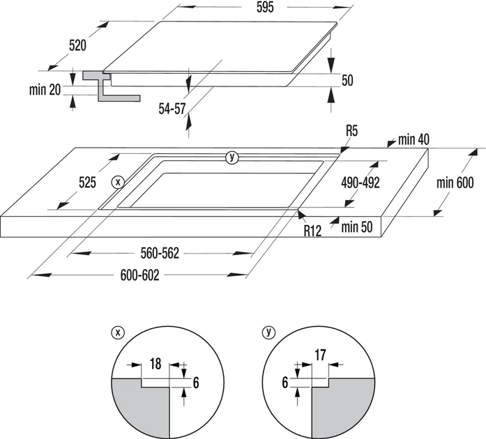- Габарити духовки (В x Ш x Г): 59.5 х 59.5 х 56.4 см