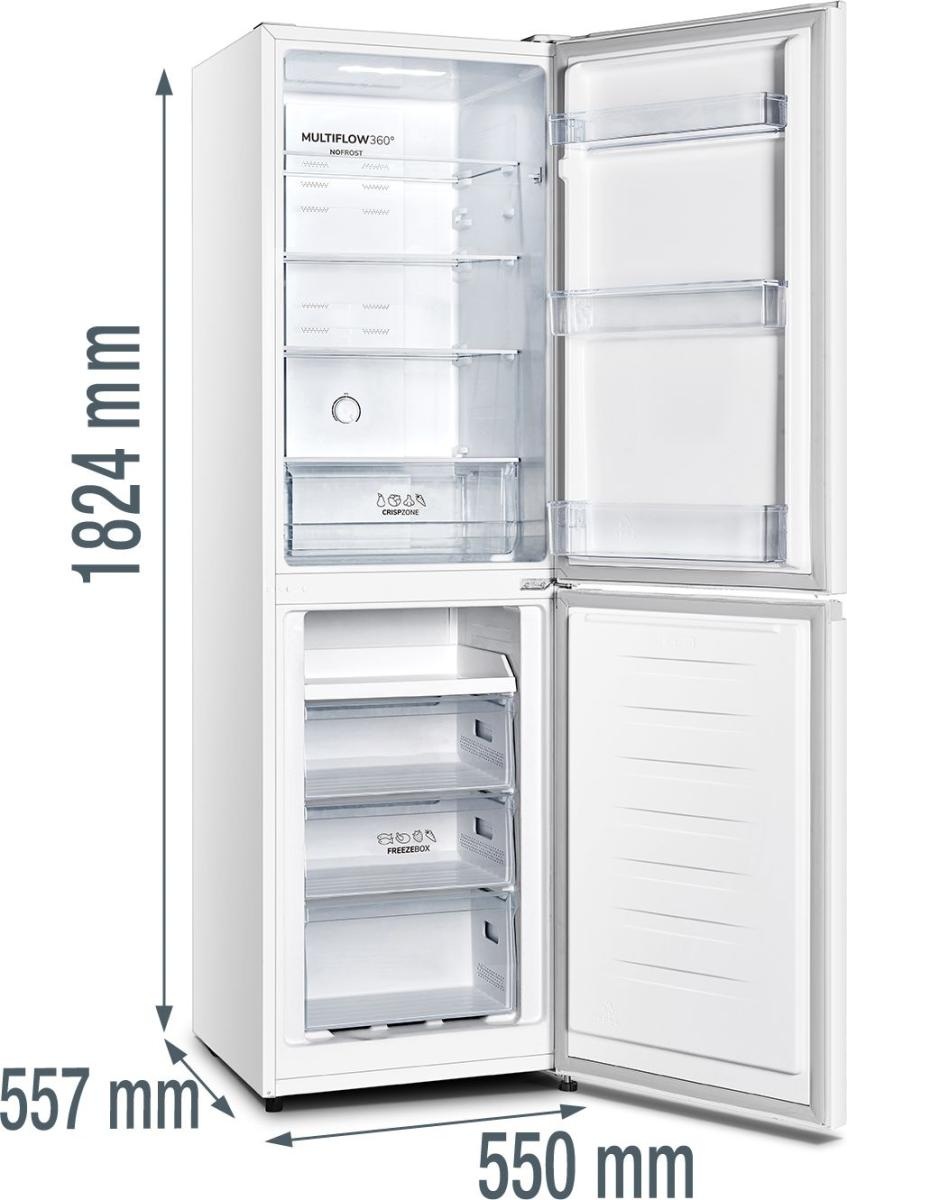 Холодильник комбінований GORENJE NRK 418 ECW4. Система охолодження в морозильній камері запобігає накопиченню льоду та інею, зберігає низьке споживання енергії та підтримує ідеальний мікроклімат для свіжих продуктів у холодильнику. Циркуляція іонізованого повітря запобігає висиханню продуктів і зберігає їх вітаміни та мінерали. Енергоощадне світлодіодне освітлення у вигляді стрічки забезпечує ефективне освітлення, має тривалий термін служби та споживає менше енергії.