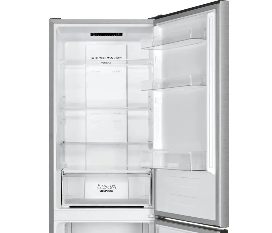 Система вентиляції MultiFlow 360° рівномірно розподіляє повітря в холодильному відділенні, забезпечуючи стабільну циркуляцію та оптимальні умови для зберігання продуктів на всіх полицях.