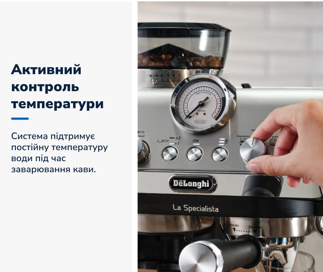 Відчуйте себе справжнім баристою з кавоваркою Delonghi EC 9155. Ручний капучинатор або панарелло, приготує повітряну і щільну молочну піну для вашого улюбленого кавового напою з молоком. У процесі приготування ви зможете самостійно регулювати кількість та щільність молочної піни для кожної порції.