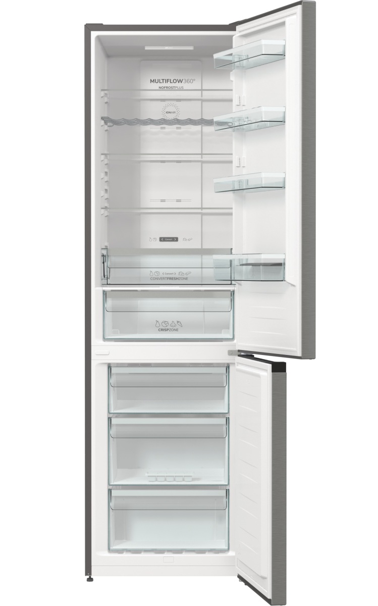Просторий ящик CrispZone забезпечує збереження свіжості та поживних властивостей продуктів завдяки зниженій температурі. Технологія IonAir створює негативно заряджені іони, які рівномірно розподіляються у холодильній камері за допомогою системи MultiFlow 360°. Повітря, збагачене аніонами, сприяє збереженню природного аромату продуктів та ефективно усуває неприємні запахи.