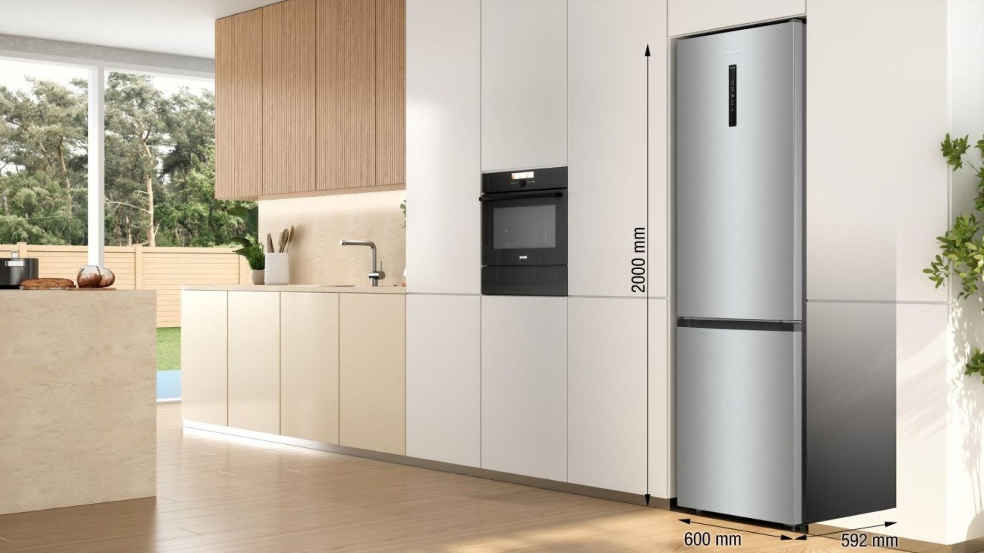 Завдяки оновленому дизайну з можливістю вбудовування модель гармонійно доповнює кухонний простір, зберігаючи при цьому велику місткість. Конструкція дозволяє відчиняти дверцята під прямим кутом, що дає змогу повністю висувати всі полиці та ящики. Таке рішення підходить для встановлення біля бокових стін, поруч зі стільницею або іншими побутовими приладами.
