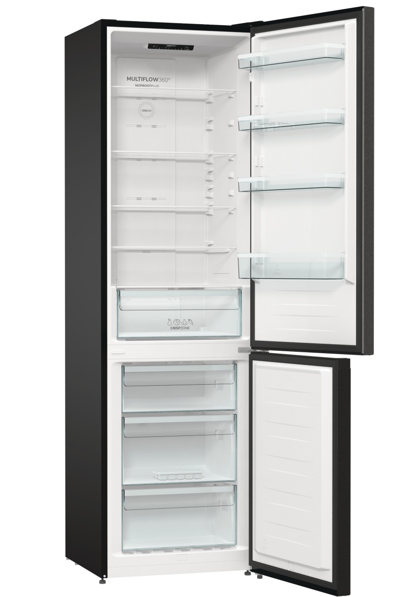 Холодильник комбінований GORENJE NRK 6202 EBXL4 належить до класу енергоефективності A++ та оснащений інтелектуальною адаптивною системою охолодження AdaptTech. Система NoFrost Plus у поєднанні з циркуляцією повітря MultiFlow 360° забезпечує рівномірний розподіл холодного повітря та стабільну температуру у всьому об’ємі. Загальний корисний об’єм становить 331 л. Ширина холодильника дорівнює 600 мм, висота — 2000 мм.
