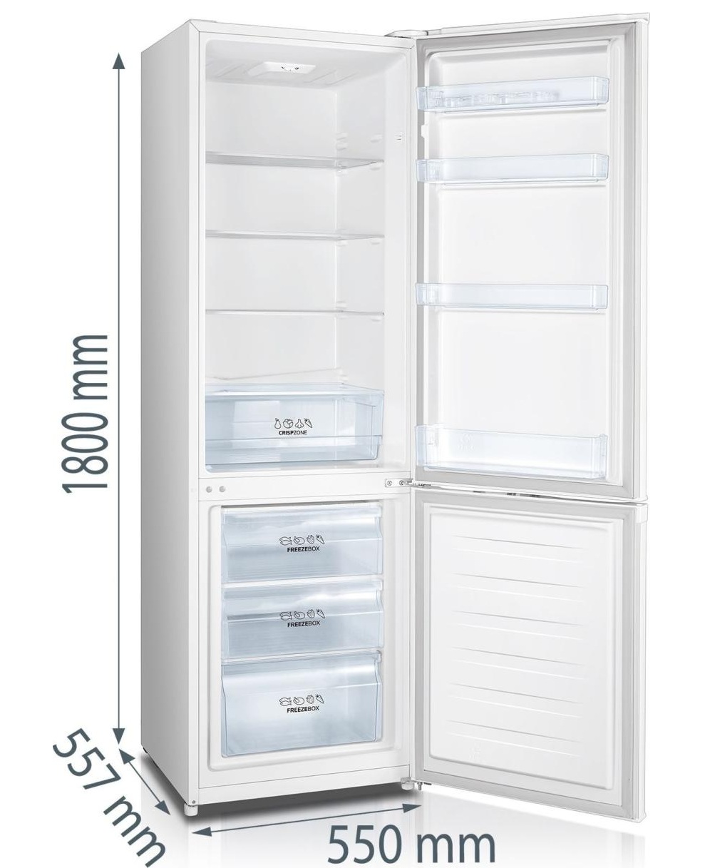 Холодильна камера має загальну місткість до 198 літрів і оснащена чотирма просторими відділеннями, що дозволяє зручно зберігати основні продукти щоденного використання. Три полиці можна легко регулювати по висоті відповідно до потреб. У разі несправності максимальний час автономного збереження продуктів становить до 15 годин. Наявність двох температурних зон спрощує правильне сортування охолоджених продуктів.