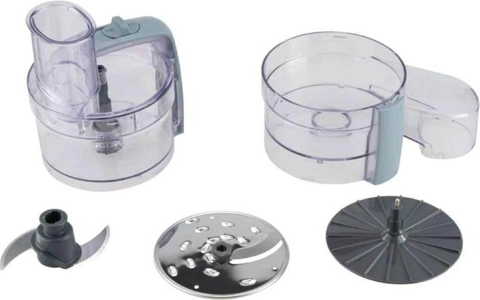 Kenwood FDP 22.130 GY постачається з різноманітними насадками, які розширюють можливості пристрою. У комплекті ви знайдете ніж-подрібнювач, диск-терку, а також насадку Express Serve, яка дозволяє натирати або нарізати продукти безпосередньо в окрему ємність. Ці насадки дозволяють швидко та легко подрібнювати, терти та нарізати продукти, що робить процес приготування їжі ще зручнішим.