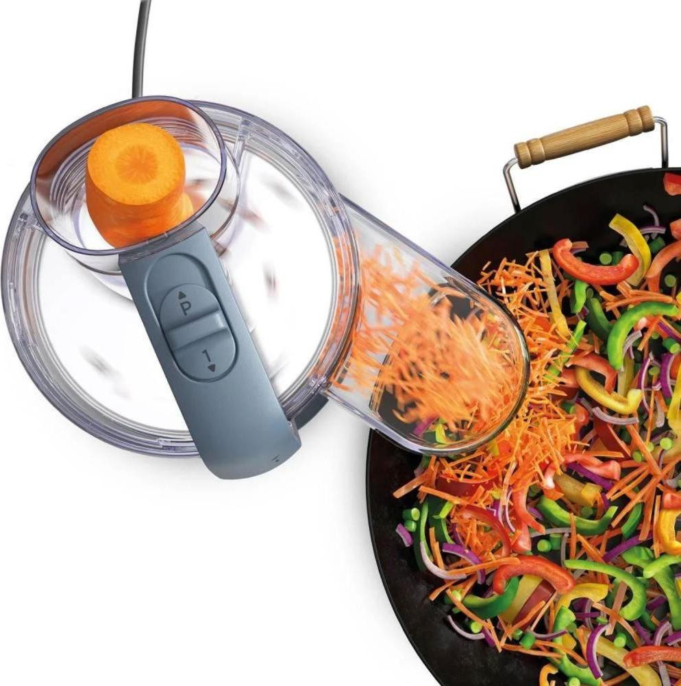 Цей кухонний комбайн оснащений потужним мотором на 650 Вт, що дозволяє швидко та ефективно виконувати різноманітні завдання. Об'єм чаші блендера складає 0,75 літра, що забезпечує достатній простір для обробки інгредієнтів. Крім того, комбайн має 2 швидкості, а також режим "пульс", що дозволяє обрати оптимальний режим для кожного типу продуктів.