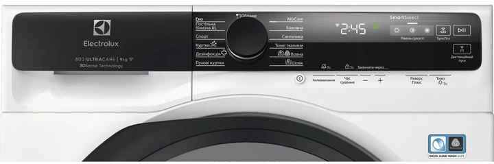 - Програми сушіння: MixCare, Бавовна, Синтетика, Тонкі тканини, Вовна, Шовк, Пухові куртки, Дезінфекція, Куртки, Спорт, Постільна білизна XL, Еко