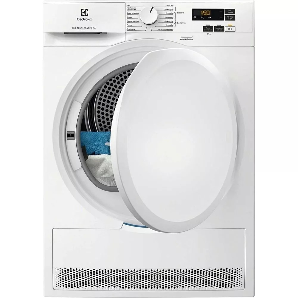 Сушильна машина ELECTROLUX EW6D171YU з тепловим насосом 600 GentleCare рівномірно висушує білизну при вдвічі нижчій температурі, не збільшуючи тривалість циклу. Це дозволяє уникнути зайвого нагрівання тканин. Таким чином, одяг зберігає свій привабливий зовнішній вигляд ще довше.
