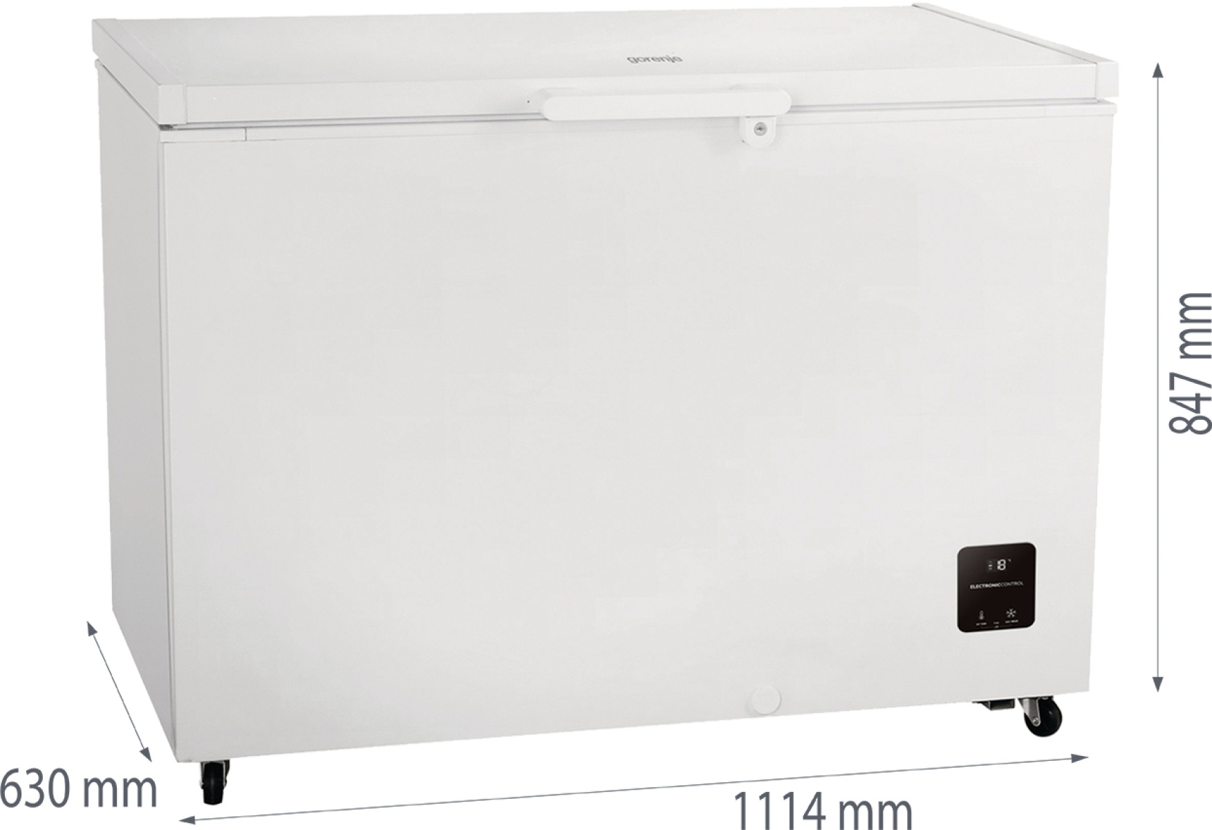 Морозильна скриня GORENJE FH 30 EAW стабільно працює навіть за сильного холоду, ефективно функціонуючи при температурі навколишнього середовища до –15 °C, що робить її придатною для встановлення в гаражі чи погребі.