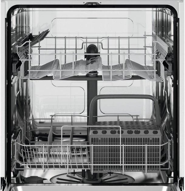 Внутрішні кошики мають рухомі елементи та змінну конструкцію, що спрощує завантаження різних типів посуду. Стійки для тарілок у нижньому кошику легко складаються, а столові прилади можна розміщувати у спеціальному лотку, де вони краще промиваються та висихають. Кожна деталь продумана для максимальної зручності використання.