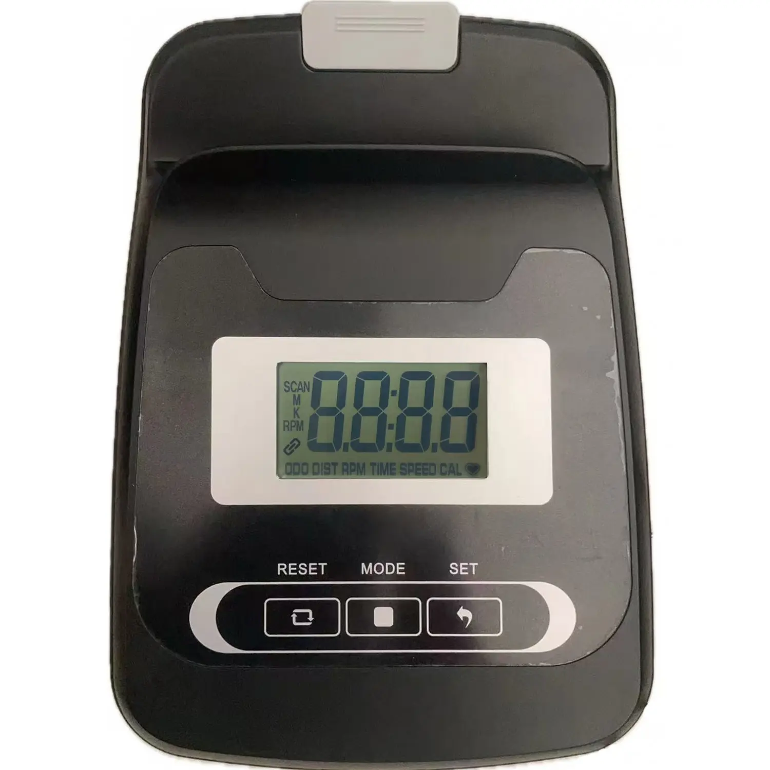 Інформативний LCD‑комп’ютер відображає ключові параметри: час, дистанцію, швидкість, оберти за хвилину, витрату калорій та пульс. Для зручного переміщення тренажер оснащений транспортувальними роликами та компенсаторами нерівностей підлоги.
