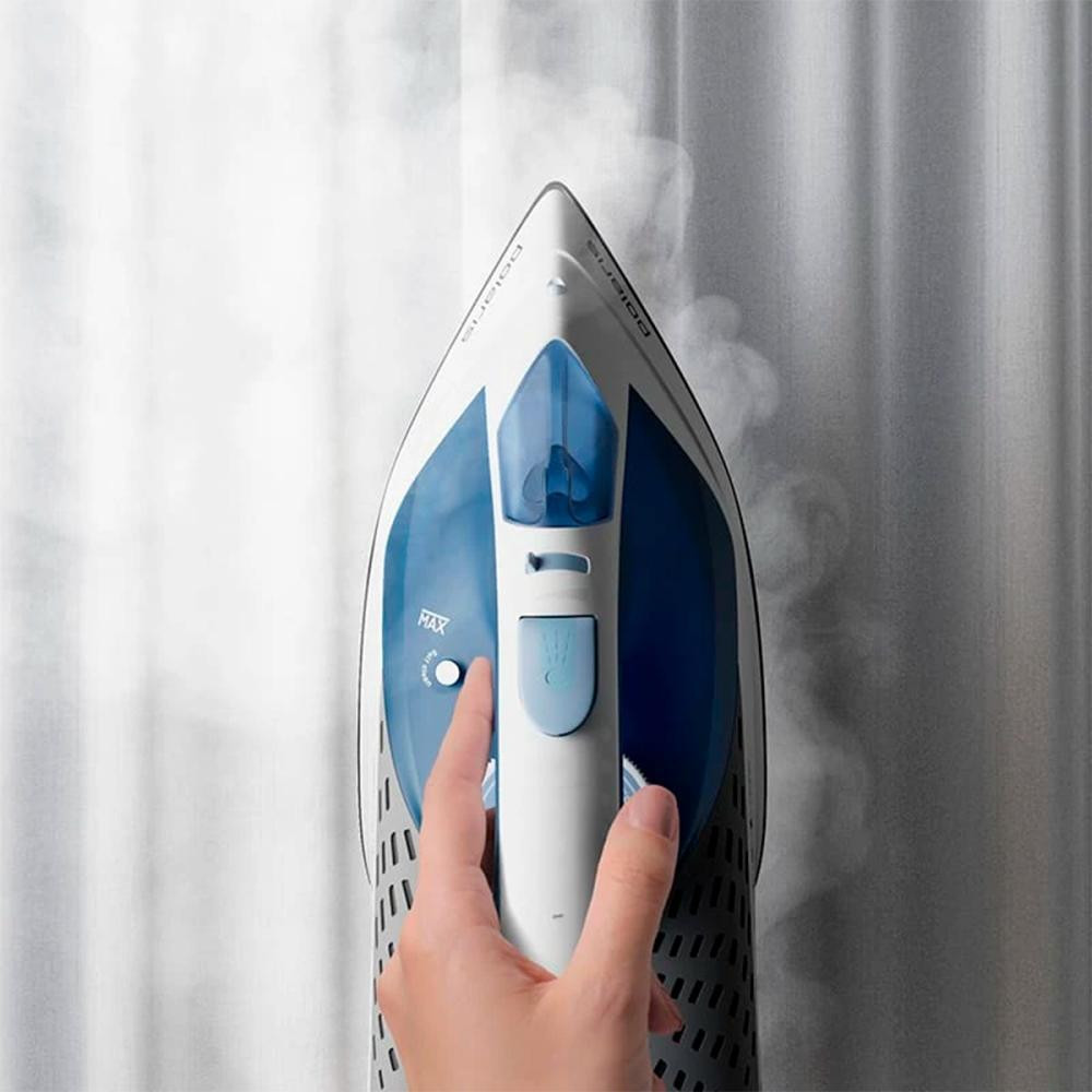Місткий резервуар для води, об'ємом 330 мл, забезпечує тривалу роботу без частих зупинок для доливання води. Зручно розташований розпилювач води полегшує процес розгладжування стійких заломів. Регулятори нагріву та подачі пари дозволяють тонко налаштувати праску під ваші індивідуальні потреби. Індикатор рівня води інформує про необхідність доливання, що робить використання ще зручнішим.