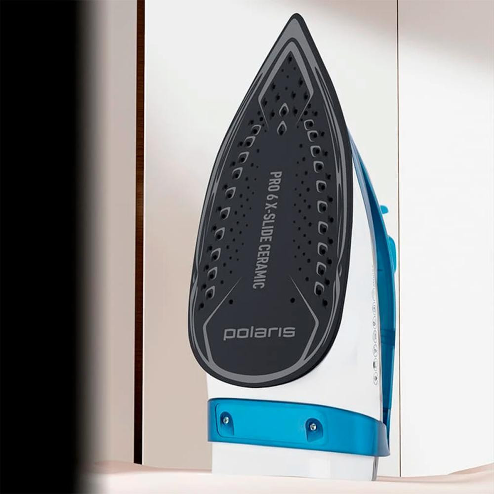 Праска Polaris PIR 2830AK у вишуканому насичено-синьому кольорі є втіленням найсучасніших технологій та відмінної якості. Завдяки потужності у 2800 Вт, цей прилад гарантує швидке нагрівання, що суттєво економить ваш час та зусилля. Керамічна підошва PRO 6 X-SLIDE Ceramic забезпечує ідеальне ковзання по будь-якій тканині, рівномірний розподіл тепла, що робить прасування легким та ефективним. Технологія SMART HEAT допомагає підтримувати оптимальну температуру, яка підходить для різних видів тканин.