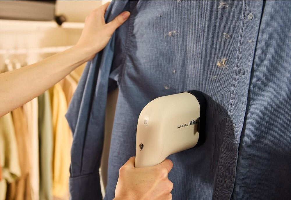 Розгладжуйте одяг та одночасно очищуйте від зайвого ворсу за допомогою спеціальної насадки від Braun. Просто під’єднуйте щітку, що прибере пил, волосся і шерсть домашніх тварин з поверхні вашого одягу, забезпечивши ретельний догляд за штанами, сорочками та піджаками.