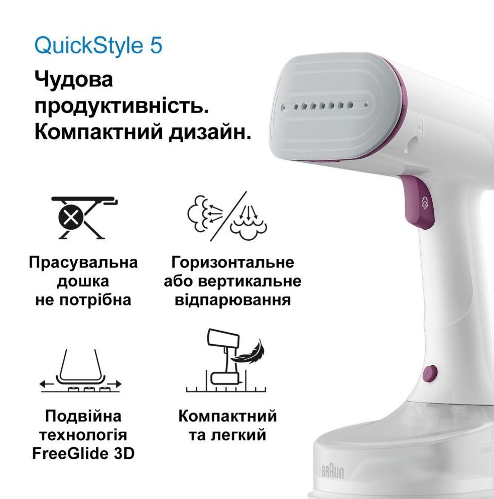 Відпарювач BRAUN GS 5011 PU з технологією FastSteam. Потужна пара для швидкого і легкого видалення зморшок і змішування водяної пари для ідеального результату.