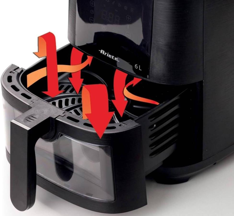 За допомогою мультипечі ARIETE 4626 Airy Fryer 6L ви можете смажити будь-яку страву у великих кількостях, використовуючи лише ложку олії, щоб отримати здорову і смачну страву. Завдяки великому знімному кошику об'ємом 6 л, з фритюрницею Ariete Airy Fryer 6L ви можете приготувати до 2,5 кг картоплі фрі за один раз! Картопля фрі, але не тільки, а також крокети, риба, м'ясо та багато інших панірованих продуктів, як заморожених, так і готових до смаження, а також свіжих і щойно панірованих, завдяки 8 попередньо встановленим програмам.