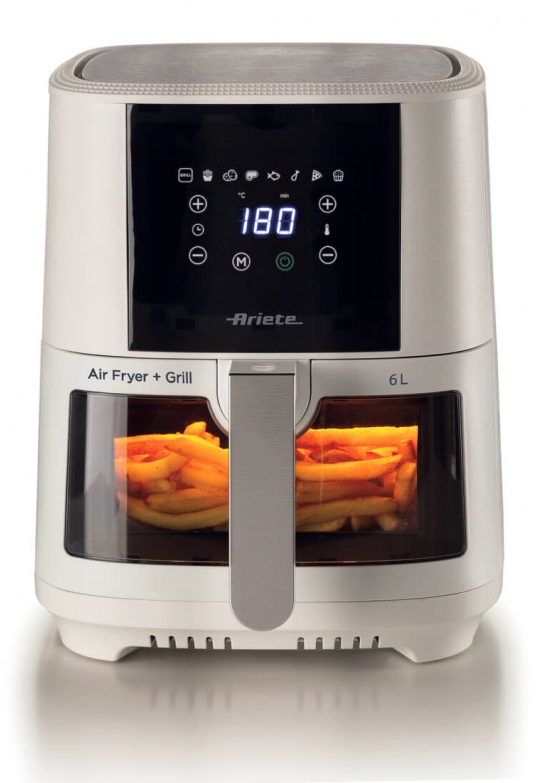 За допомогою мультипечі ARIETE 4626 Airy Fryer 6L ви можете смажити будь-яку страву у великих кількостях, використовуючи лише ложку олії, щоб отримати здорову і смачну страву. Завдяки великому знімному кошику об'ємом 6 л, з фритюрницею Ariete Airy Fryer 6L ви можете приготувати до 2,5 кг картоплі фрі за один раз! Картопля фрі, але не тільки, а також крокети, риба, м'ясо та багато інших панірованих продуктів, як заморожених, так і готових до смаження, а також свіжих і щойно панірованих, завдяки 8 попередньо встановленим програмам.