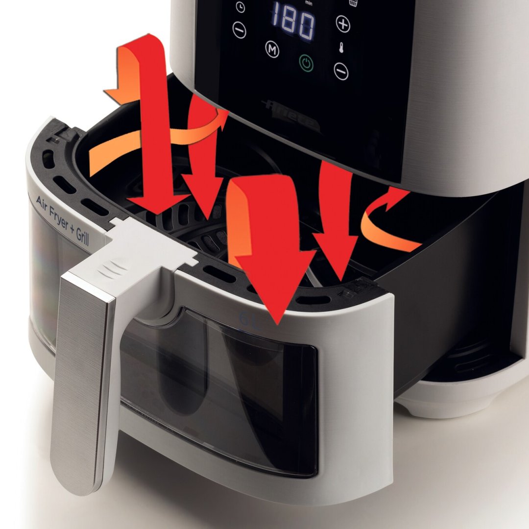 З Air Fryer 6L ви можете смажити будь-які продукти без диму і без залишення в будинку неприємного запаху смаження, типового для фритюрниць. Повітря високої температури циркулює всередині фритюрниці, готуючи швидко і без жиру, не випускаючи дим і запахи назовні.