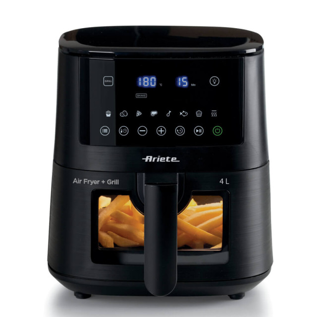 Мультипіч ARIETE 4633. За допомогою фритюрниці 4L ви можете смажити величезні кількості будь-яких страв, використовуючи лише одну столову ложку олії, щоб отримати здорові та смачні смажені страви. Завдяки кошику об'ємом 4 л, з фритюрницею Ariete Air fryer 4L ви зможете приготувати до 1,5 кг картоплі фрі за один раз! Картопля фрі, але не тільки вона, а також крокети, риба, м'ясо та багато інших панірованих страв, як заморожених і готових до смаження, так і свіжих і нещодавно панірованих, завдяки 9 попередньо встановленим програмам.