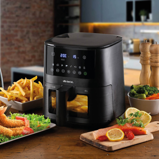 Фритюрниця Air Fryer 4L легко чиститься завдяки антипригарному кошику з грилем і має низький вплив на навколишнє середовище, оскільки не утворює відпрацьованого масла, одного з найскладніших для утилізації відходів.