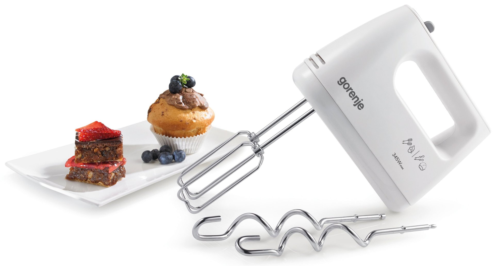 - Насадки: вінчики (2 шт.), гаки для тіста (2 шт.)