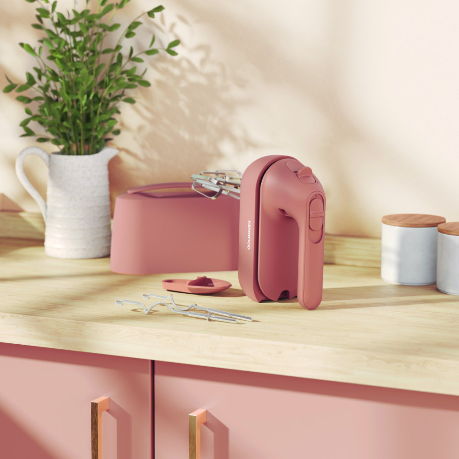 Оснащений тихим, але потужним двигуном 350 Вт, міксер забезпечує відмінні результати, зберігаючи компактний розмір. Кнопка для зняття насадок розташована на передній панелі, що запобігає випадковому натисканню.
