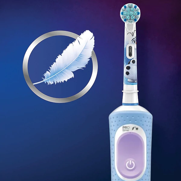Зубна щітка Oral-B D103.413.2KX Frozen зі змінною насадкою Про Кідс, яка глибше очищає для боротьби з карієсом, порівнюючи зі звичайною мануальною зубною щіткою.