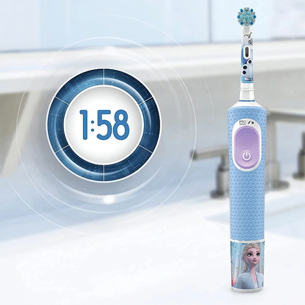 Зубна щітка Oral-B D103.413.2KX Frozen зі змінною насадкою Про Кідс, яка глибше очищає для боротьби з карієсом, порівнюючи зі звичайною мануальною зубною щіткою.