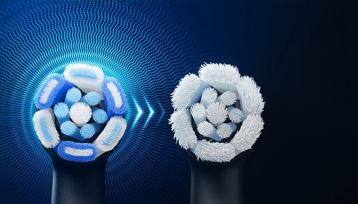 На 100 % чистіші зуби з технологією iO від Oral-B у порівнянні зі звичайною мануальною щіткою: ефективне видалення нальоту та лагідне ставлення до ясен.