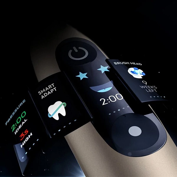 Інтерактивний дисплей щітки мотивує до ідеального чищення, відстежуючи час, силу натискання та нагадуючи про необхідність заміни насадки.