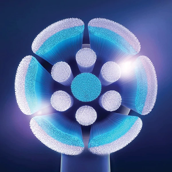 Насадка має високу щільність щетинок, при цьому зовнішній обідок щетини складається з найтонших і м'яких ниток Oral-B. Це забезпечує дбайливий догляд і захист чутливої емалі та ясен.