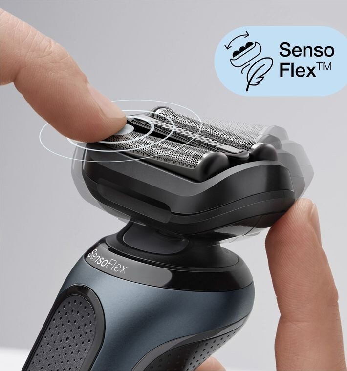- Адаптація для найменшого тиску. Дерматологічно протестована головка SensoFlex мінімізує тиск на чутливу шкіру, водночас забезпечуючи ретельне гоління.
