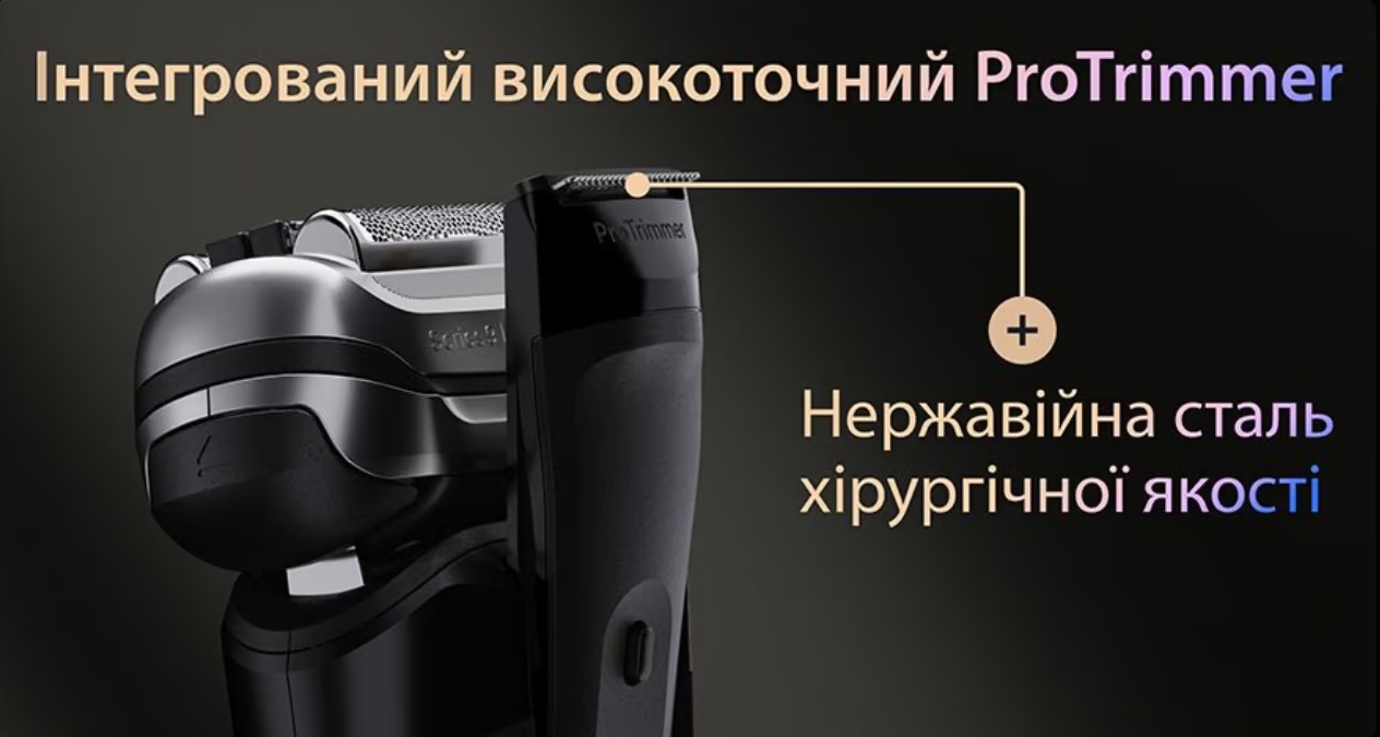 - Особливості: плаваюча голівка, швидка зарядка, дорожній кейс, сенсор визначення щільності щетини