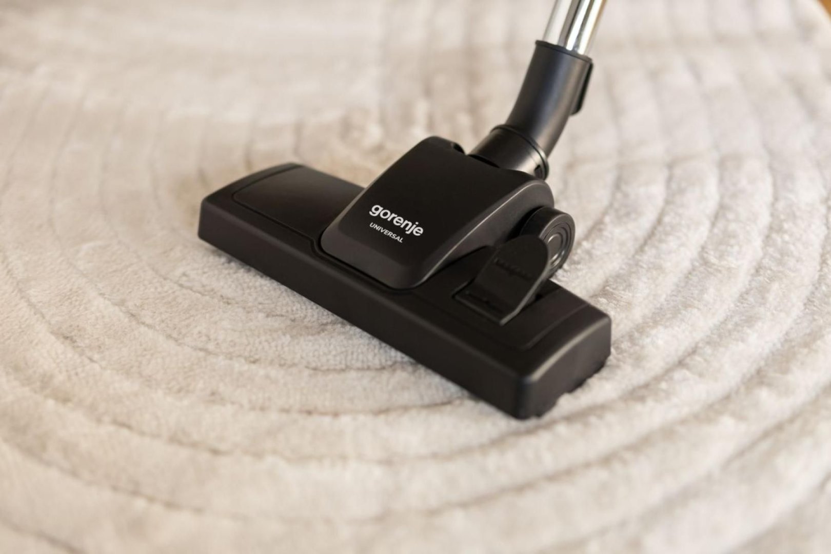 Пилосос Gorenje VCE01G4AEBK. Гумові колеса — це ключова особливість пилососів, яка значно підвищує комфорт та безпеку використання. Їхня основна перевага полягає в запобіганні пошкодженню делікатних підлог. На відміну від пластикових чи металевих коліс, гумові не залишають жодних слідів, подряпин чи потертостей на таких чутливих покриттях, як паркет, ламінат, вініл чи кахель. Крім того, гумова поверхня забезпечує стабільне зчеплення з будь-якою поверхнею. Це дозволяє пилососу плавно і легко переміщатися, не "ковзаючи" і не залишаючи неприємних смуг. Додатковим бонусом є зменшення шуму під час руху пилососа. Ваша підлога буде захищена, а переміщення приладу по дому стане тихим і безпроблемним.