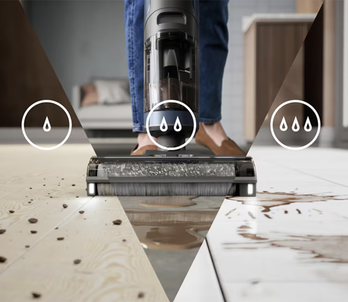 Легше прибирайте сухе й вологе забруднення завдяки розумному розпізнаванню бруду. Пилосос Wet&Dry виявляє бруд за допомогою інфрачервоної технології та регулює потужність всмоктування. Очищує липкі плями за допомогою функції ефективного розподілу води.