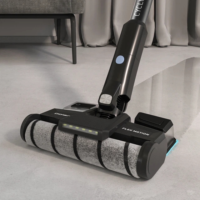 Потужний інверторний двигун 500 Вт забезпечує до 60 хвилин безперервної роботи. Технологія Cyclonic Smart автоматично регулює потужність всмоктування (до 180 Вт) залежно від забруднення в режимі "авто", подовжуючи час роботи. Технологія Flex Motion із гнучкою трубою та 360° рухами полегшує прибирання, а Walk by itself завдяки електроприводу на щітці дозволяє пилососу самостійно рухатися вперед, зменшуючи відчутну вагу на горизонтальних поверхнях. Підтримує сухе та вологе прибирання.