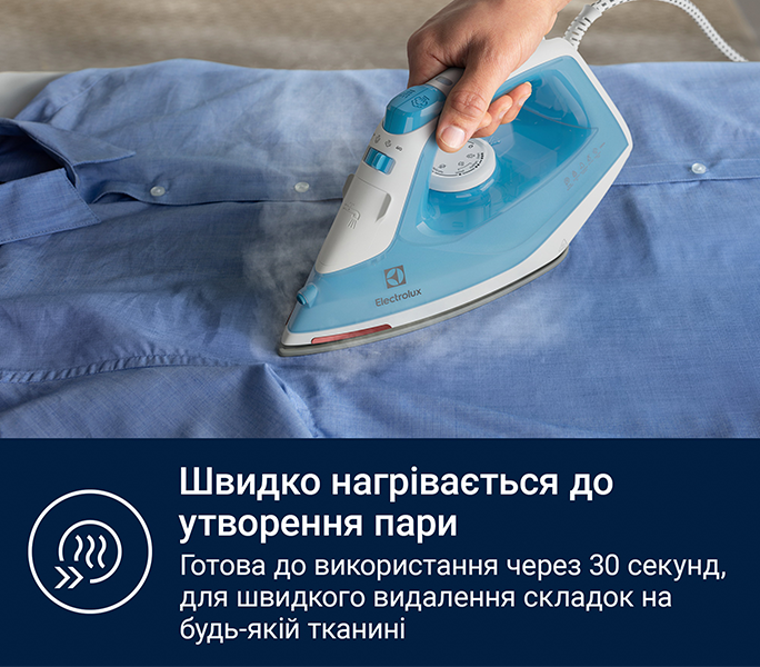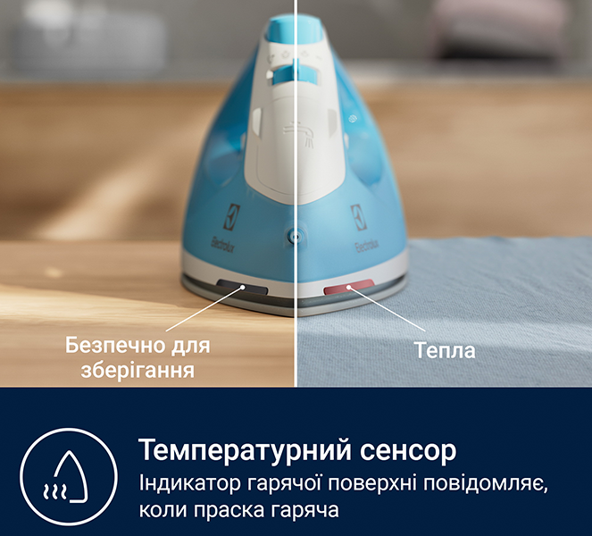 Протикрапельна подвійна металева конструкція праски запобігає потраплянню води в парову камеру, коли температура занадто низька.