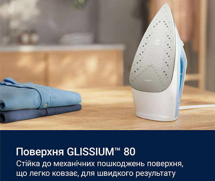 Праска Electrolux E5SI2-4CB. Праска нагрівається протягом 30 секунд для швидкого видалення складок з будь-якої тканини. Вона легко регулюється для досягнення чудових результатів кожного разу. Поверхня GLISSIUM™ 80 є стійкою до механічних пошкоджень, має безліч отворів для рівномірного розподілу пари та легко ковзає по вашому одягу.