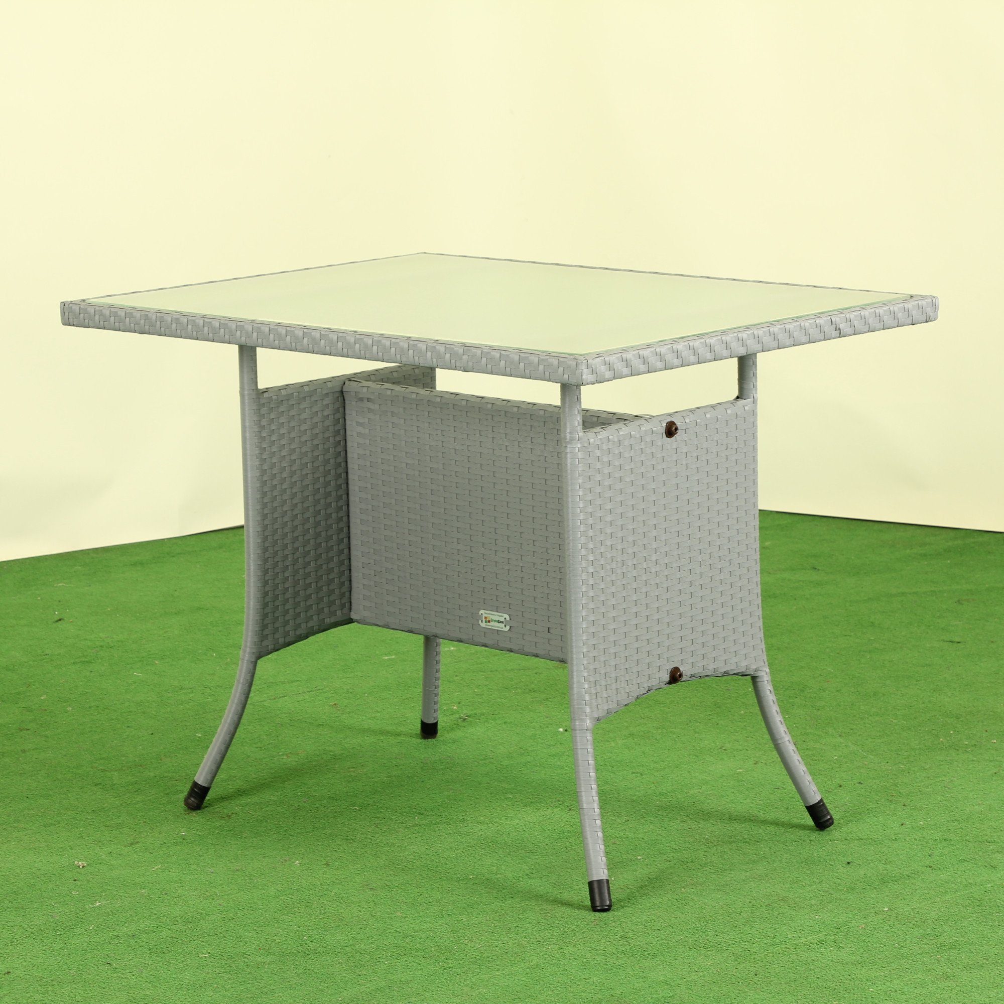 Стіл садовий Greengard Комфорт 100 Ст-1.100.75-4 — це практичний і стильний варіант меблів для дому чи саду. Розбірна конструкція та полегшений сталевий каркас забезпечують зручність у транспортуванні та переміщенні. Навіть при частому використанні виріб зберігає свій вигляд завдяки плетінню зі штучного ротангу, яке стійке до стирання. Скляна стільниця товщиною 0,6 см посилена декоративною плівкою d-c-fix виробництва Німеччини, що додає матовий відтінок та підвищує міцність. Стільниця надійно зафіксована, не ковзає та не хитається.