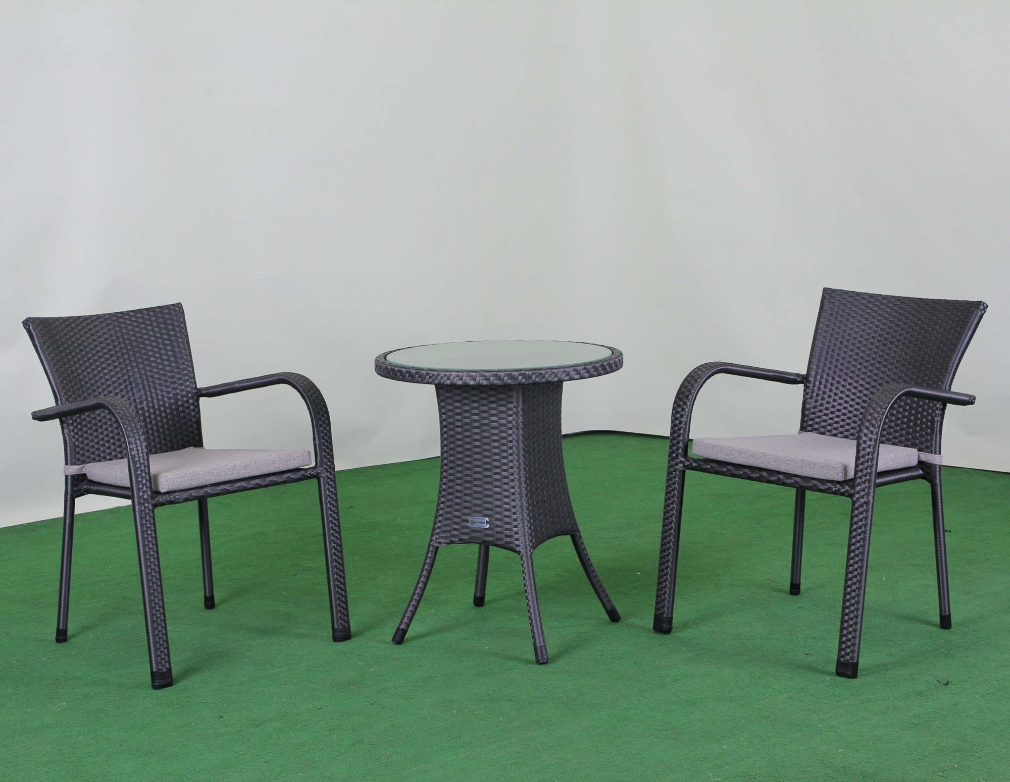 Комплект садових меблів Greengard Терра— стильне та сучасне рішення для облаштування затишного балкона чи невеликої зони відпочинку. Набір складається зі столу та двох стільців із підлокітниками. Штучний ротанг забезпечує легкість та привабливий вигляд, а скляна стільниця додає елегантності та практичності. Металевий каркас гарантує надійність конструкцій і стійкість до щоденного використання. За бажанням комплект можна доукомплектувати м’якими подушками.